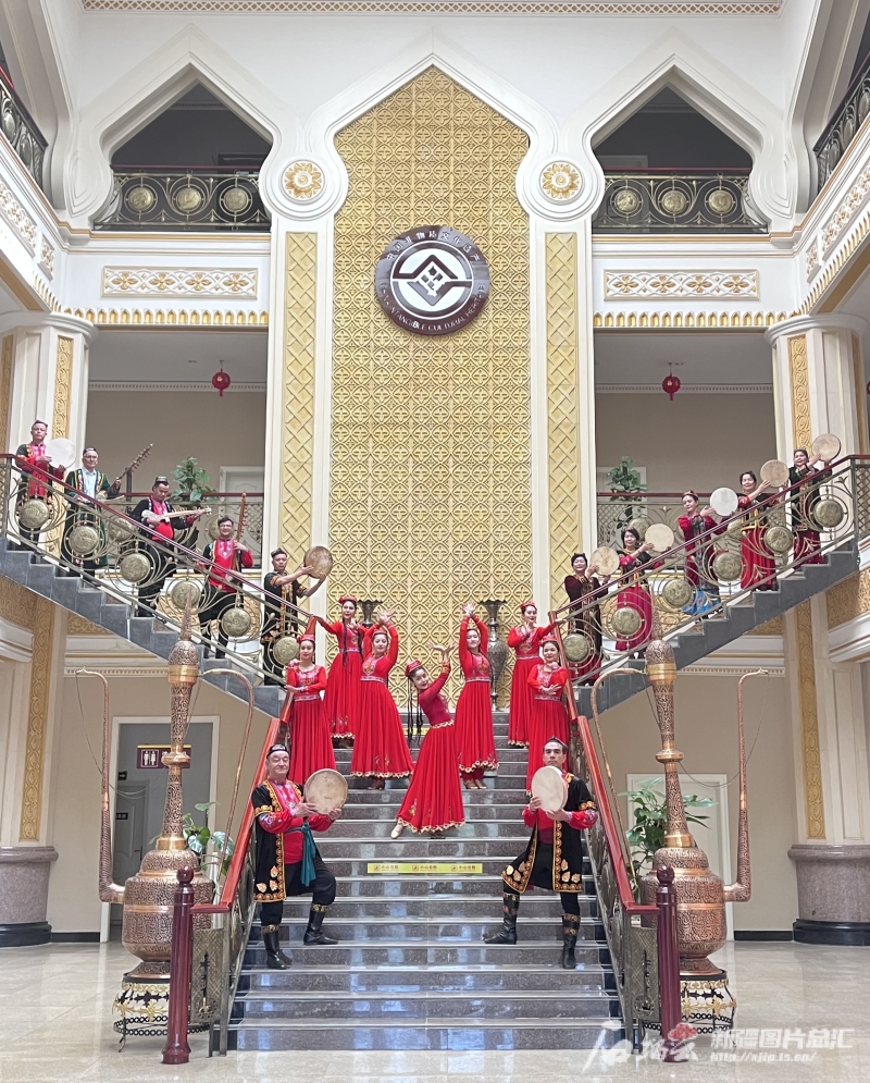 在哈密市非物質(zhì)文化遺產(chǎn)保護(hù)中心,回城鄉(xiāng)的傳承人們和當(dāng)?shù)匮輪T進(jìn)行哈密木卡姆表演。石榴云/新疆日報記者 王晶晶攝