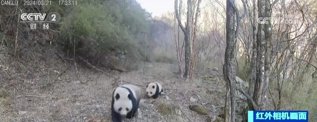 這段視頻拍攝于海拔約2000米處,大熊貓媽媽身形健壯,步伐從容地走在前面,幼崽嬌小可愛(ài),緊緊跟在媽媽的身后。十幾分鐘后,這對(duì)“母子”的身影再次出現(xiàn)在同一條溝的另一個(gè)點(diǎn)位。