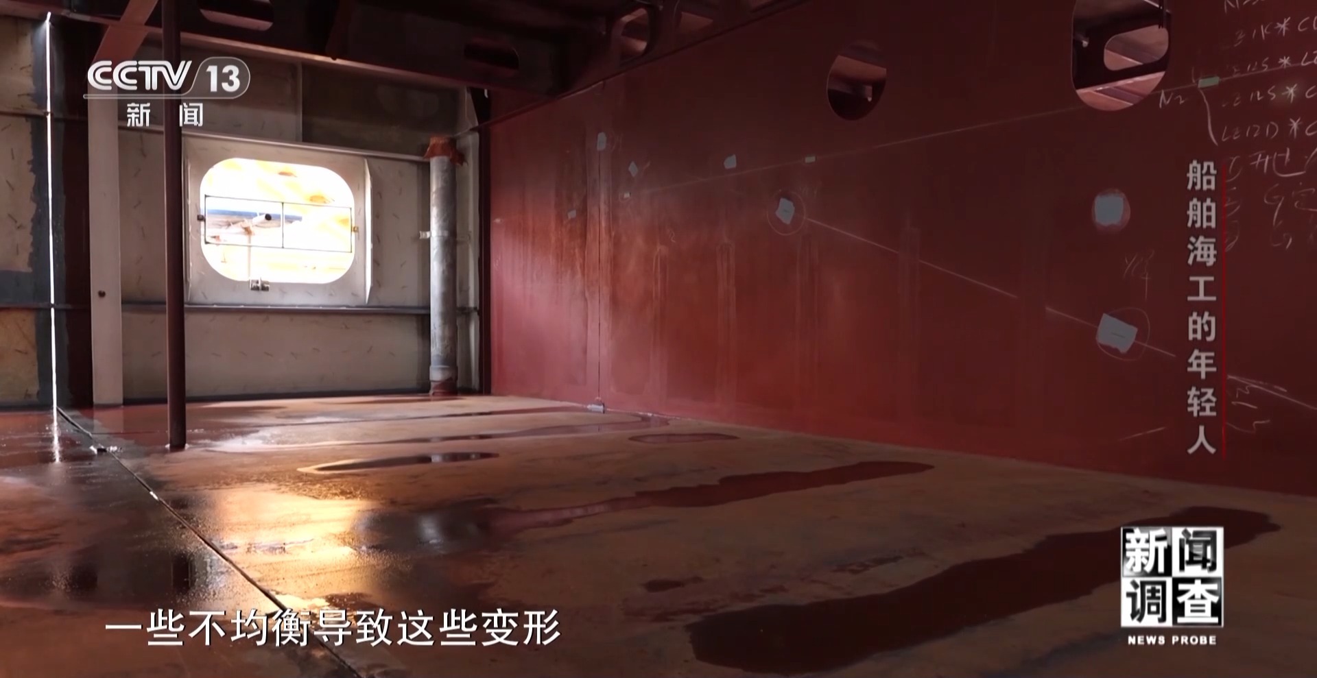 上海外高橋造船有限公司精度技術部副部長 孫建志:這個總段是典型的薄板結構,不平程度在正負15毫米之內(nèi)。所有的變形都是熱的影響,熱輸入以后就會產(chǎn)生殘余應力,一些不均衡導致這些變形。尤其是薄板結構更明顯,現(xiàn)在2號船的整體的平整度應該相對1號船已經(jīng)好很多了。