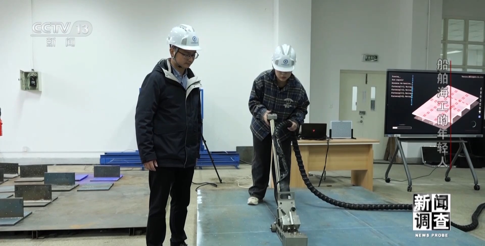 上海外高橋造船有限公司精度技術部副部長 孫建志:我們做了大量的實驗,根據(jù)不同的變形用不同的辦法,看它的矯平的效果,