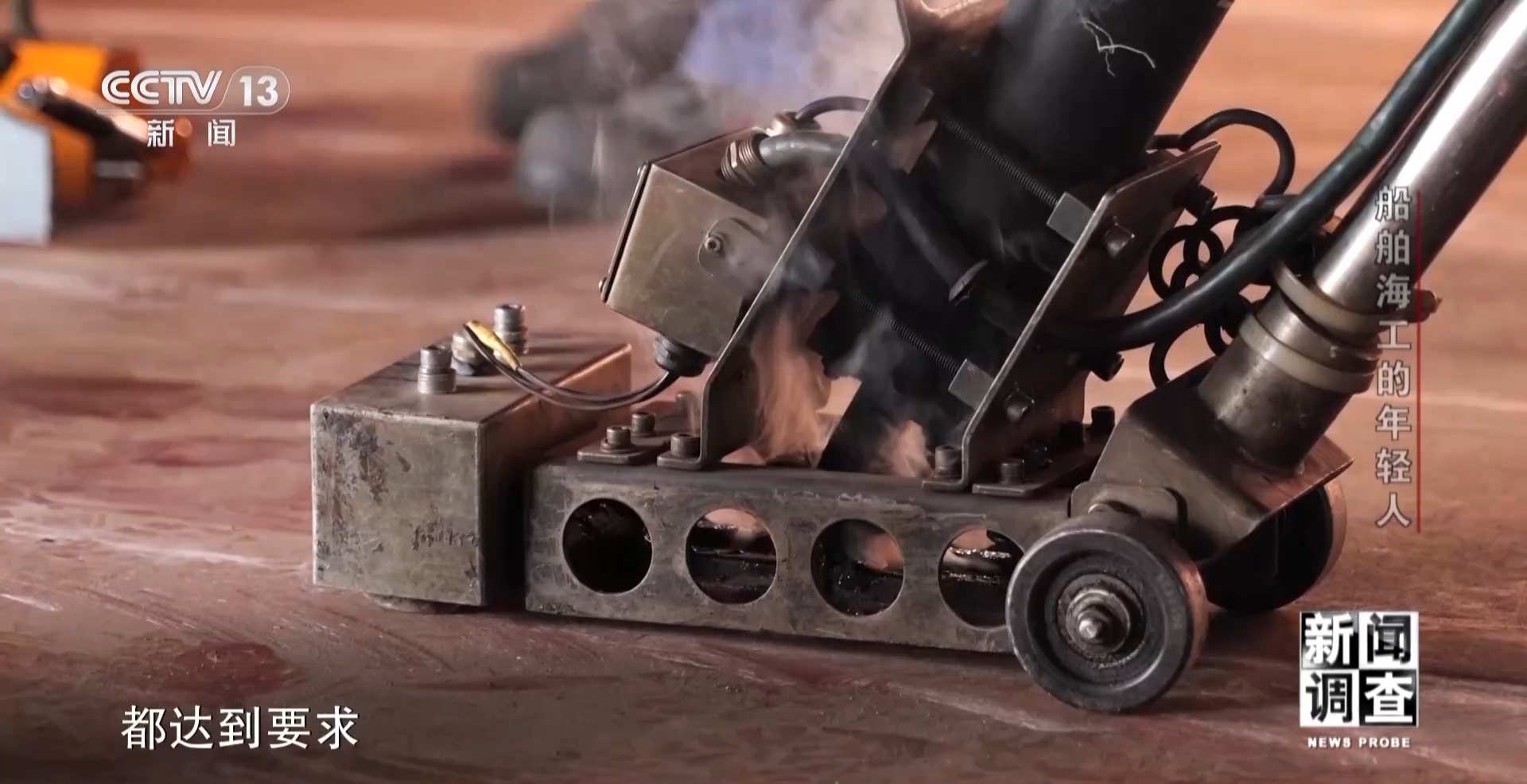 江蘇大洋海洋裝備有限公司技能大師工作室主任 孫玉龍:那時候,我們焊的時候手上面都綁了鋼筋,把它折彎了負重,綁在手腕上面舉著。