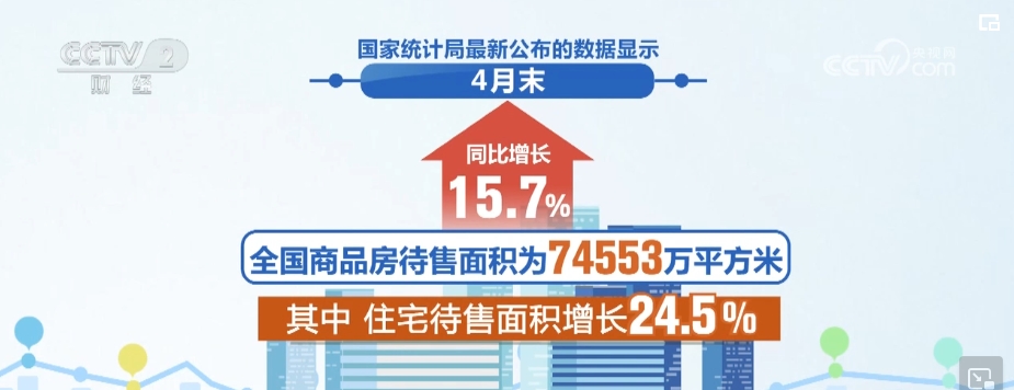 國家統(tǒng)計(jì)局最新公布的數(shù)據(jù)顯示,4月末,全國商品房待售面積為74553萬平方米,同比增長15.7%。其中,住宅待售面積增長24.5%。
