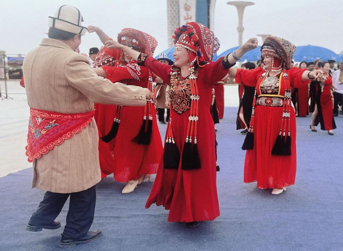 ?。▓D為柯爾克孜族歌舞互動 馬倩妮攝)