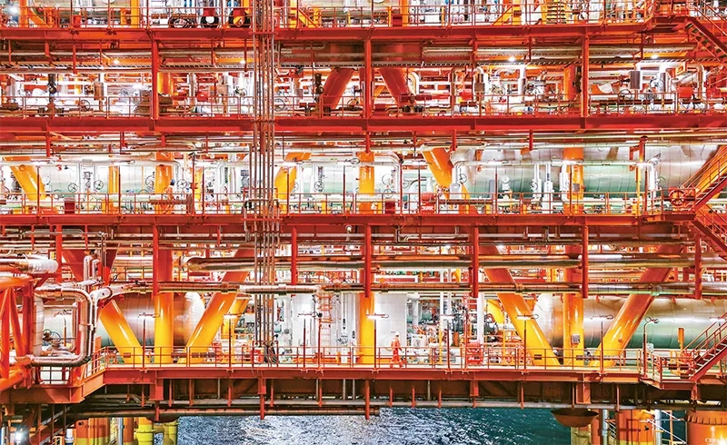 近年來,我國堅(jiān)持創(chuàng)新引領(lǐng),加快發(fā)展新質(zhì)生產(chǎn)力,重大工程科技含量持續(xù)攀升。2023年11月14日,中國海油宣布我國渤海首個千億方大氣田——渤中19—6氣田Ⅰ期開發(fā)項(xiàng)目成功投產(chǎn),標(biāo)志著我國海上深層復(fù)雜潛山油氣藏開發(fā)邁入新階段。圖為工作人員在渤中19—6氣田作業(yè)。 新華社發(fā) 杜鵬輝/攝