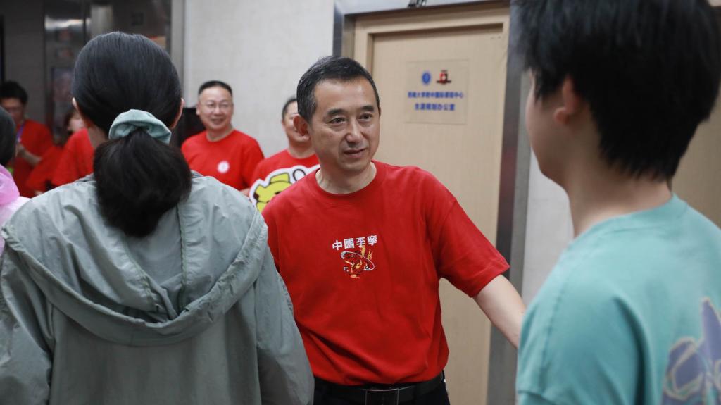 6月7日,北京一零一中學(xué)的送考老師們?cè)谛iT(mén)口為考生加油鼓勁。(北京一零一中學(xué)供圖)
