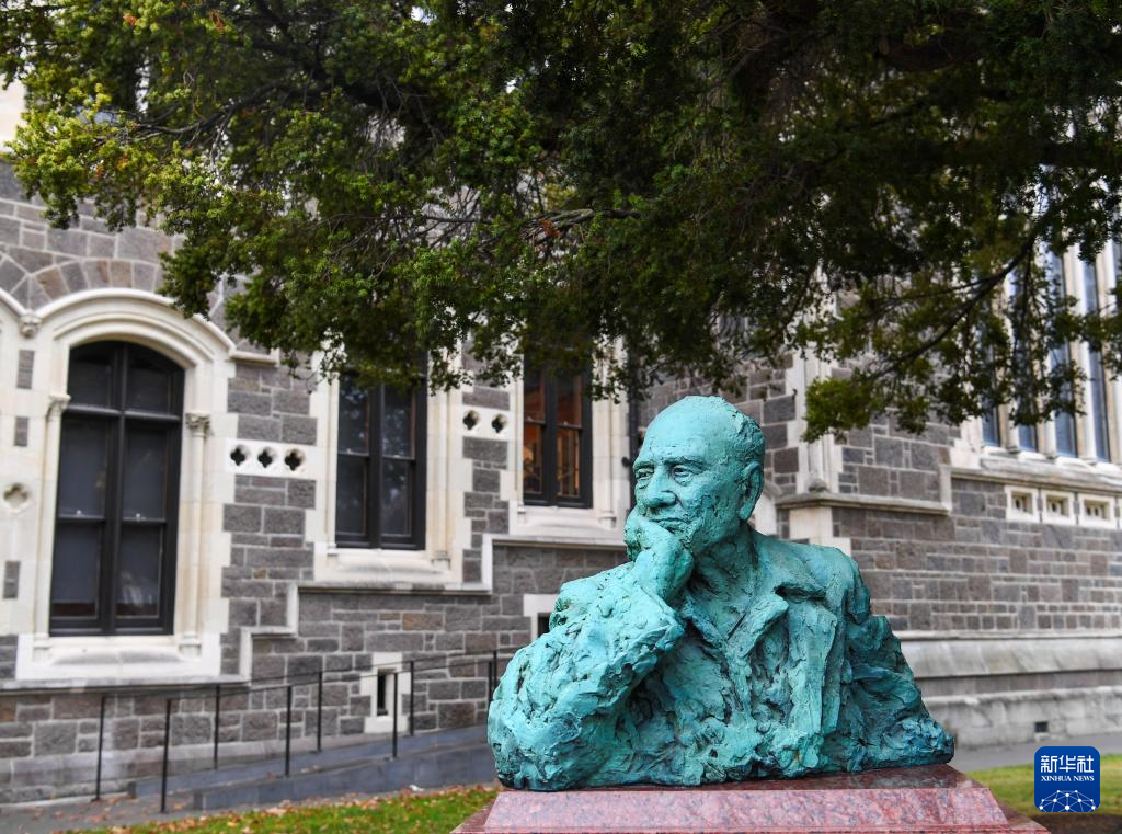 這是5月24日新西蘭克賴(lài)斯特徹奇藝術(shù)中心拍攝的路易·艾黎塑像。新華社記者 郭磊 攝