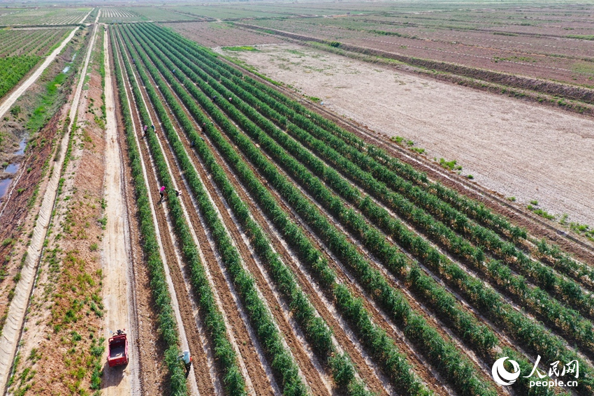 枸杞采摘園內掛在枝頭的枸杞。人民網 周航攝