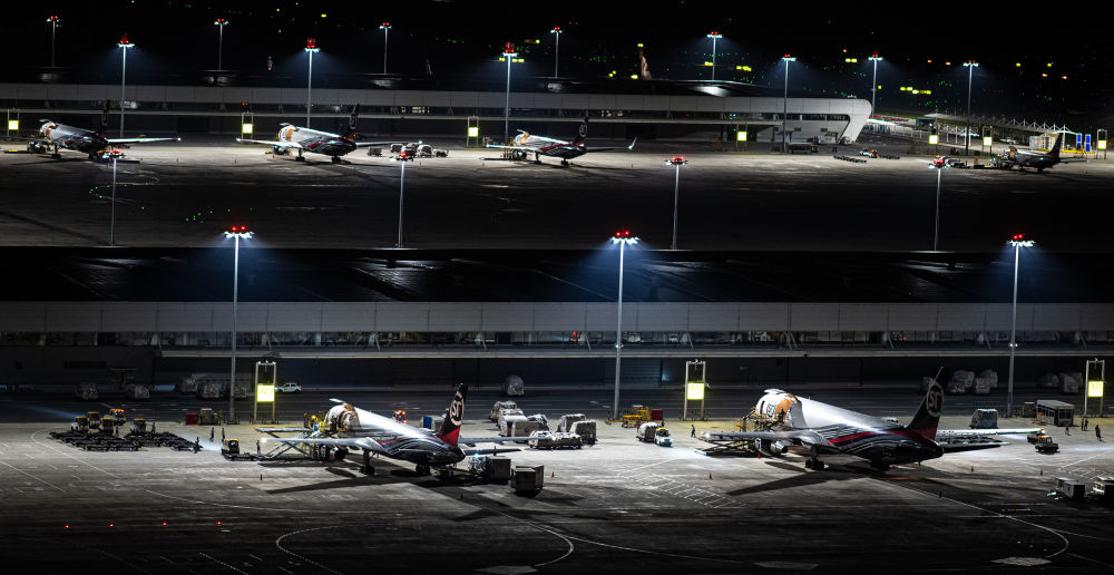 6月2日凌晨拍攝的鄂州花湖國際機(jī)場停機(jī)坪一角。新華社記者 肖藝九 攝