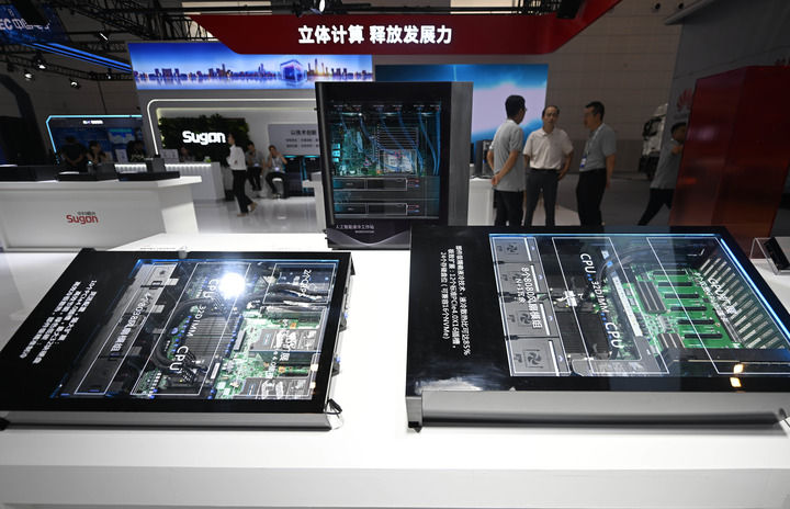 這是6月20日在博覽會(huì)上拍攝的中科曙光展區(qū)的一臺(tái)人工智能服務(wù)器。新華社記者 趙子碩 攝