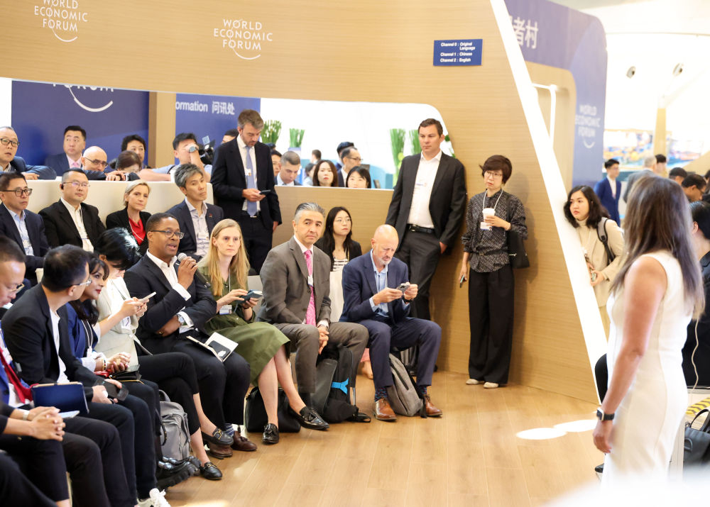 6月26日,在夏季達沃斯論壇主會場大連國際會議中心,嘉賓參與互動討論。新華社記者李鋼攝