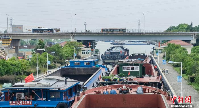 張濤介紹,之前蘇南蘇北運河標準不一,過大船只無法駛入蘇南段運河,需在長江過駁,把大船上的貨物通過小船分運。改造完成之后,南北可以統(tǒng)一通航,既大大提高通航效率,也對長江的生態(tài)環(huán)境起到重要保護作用。