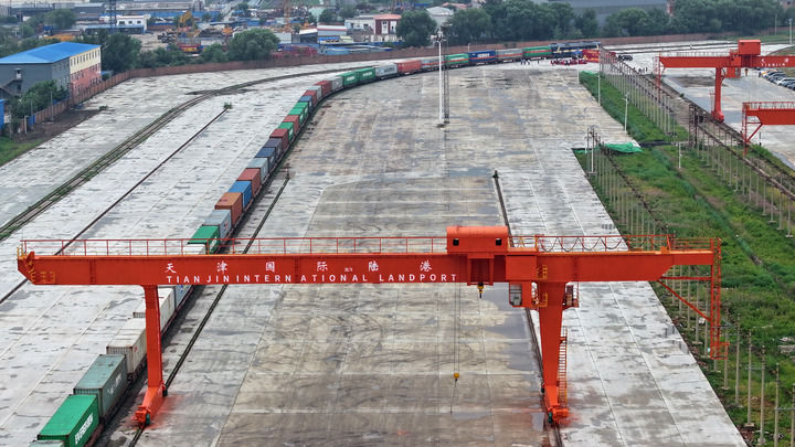 由海向陸,內(nèi)外經(jīng)貿(mào)聯(lián)動。2023年,天津口岸共發(fā)運中歐(中亞)班列711列,60%以上外貿(mào)貨物來自“一帶一路”共建國家,持續(xù)推動著京津冀對外開放水平不斷提升。
