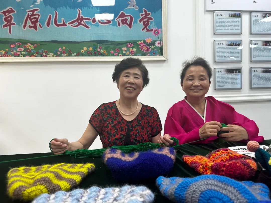 民族工藝傳承區(qū)里,志愿者高娃帶領圍坐桌前的“同學們”編織各類毛線織品,絲線繡出來的花鳥圖案引起記者們的注意。朝鮮族居民李貞子和漢族居民劉海燕是“老搭檔”,屬于“零基礎”學員的她們連續(xù)多年堅持每周上課,即便沒有課程也會來活動中心相互切磋。現(xiàn)在,課堂上教過的各式民族工藝織品,二人都能信手拈來。