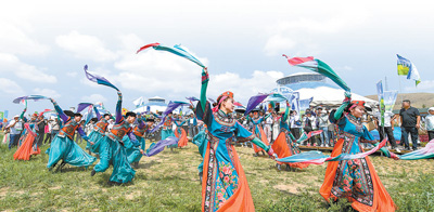 草原那達慕開幕式上載歌載舞。