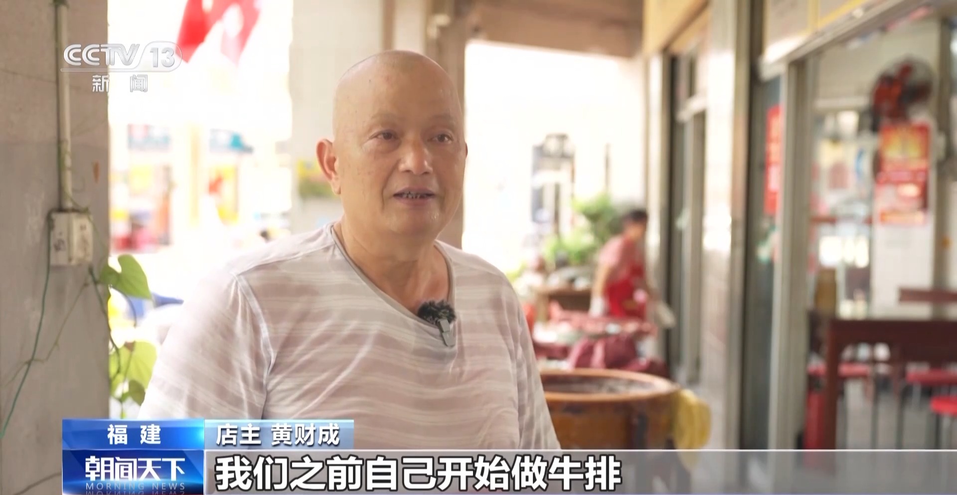 店主 黃財成:一百多年前國外的人來泉州經商,基本上都是吃牛肉的。我們之前自己開始做牛排、牛肉羹、牛雜。當年我爺爺去南洋幫廚,再來到我們這邊改良,特別是華僑大學的留學生,周六周日都來我們這家店吃。