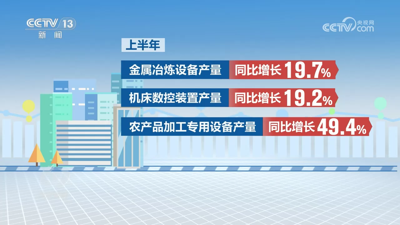 今年以來(lái),在各方共同努力下,推動(dòng)大規(guī)模設(shè)備更新和消費(fèi)品以舊換新工作取得良好開(kāi)局。一方面,大規(guī)模設(shè)備更新帶動(dòng)了相關(guān)設(shè)備生產(chǎn)較快增長(zhǎng),惠及多個(gè)重點(diǎn)行業(yè)。上半年,規(guī)模以上金屬冶煉設(shè)備、機(jī)床數(shù)控裝置、農(nóng)產(chǎn)品加工專用設(shè)備產(chǎn)量同比分別增長(zhǎng)19.7%、19.2%、49.4%。另一方面,消費(fèi)品以舊換新政策引導(dǎo)居民消費(fèi)潛力有序釋放,對(duì)拉動(dòng)汽車(chē)、家電等耐用消費(fèi)品銷(xiāo)量增長(zhǎng)起到了一定的“催化”作用。上半年,限額以上單位,也就是年主營(yíng)業(yè)務(wù)收入達(dá)到500萬(wàn)元及以上的零售企業(yè),家用電器和音像器材類(lèi)商品零售額同比增長(zhǎng)3.1%,比上年同期加快2.1個(gè)百分點(diǎn)。