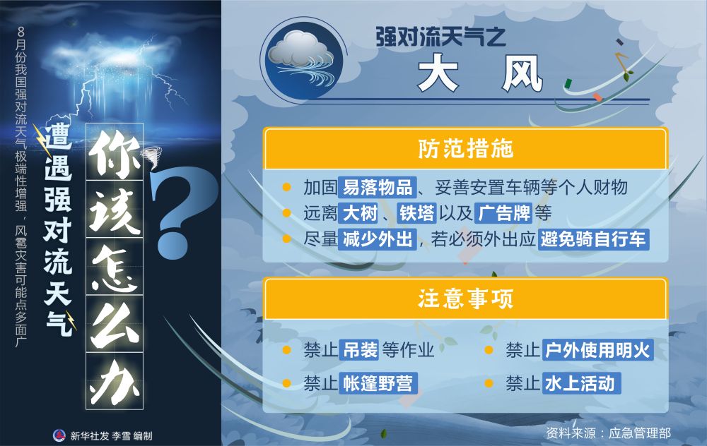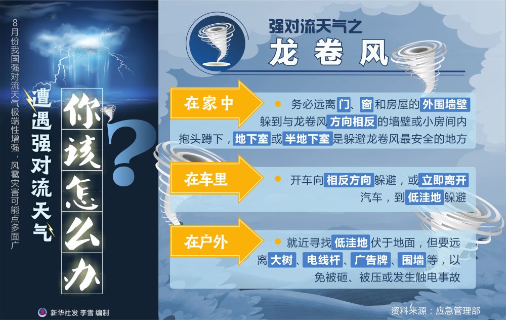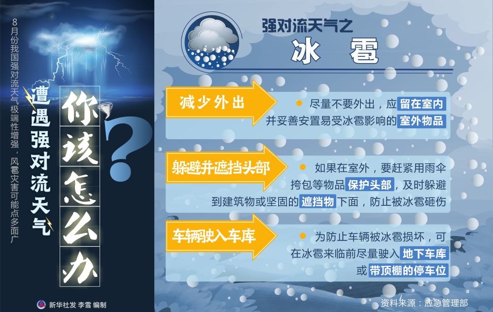 從應(yīng)急管理部獲悉,多方會(huì)商研判認(rèn)為,8月份中國(guó)強(qiáng)對(duì)流天氣極端性增強(qiáng),風(fēng)雹災(zāi)害可能點(diǎn)多面廣。遭遇強(qiáng)對(duì)流天氣,你該怎么辦?