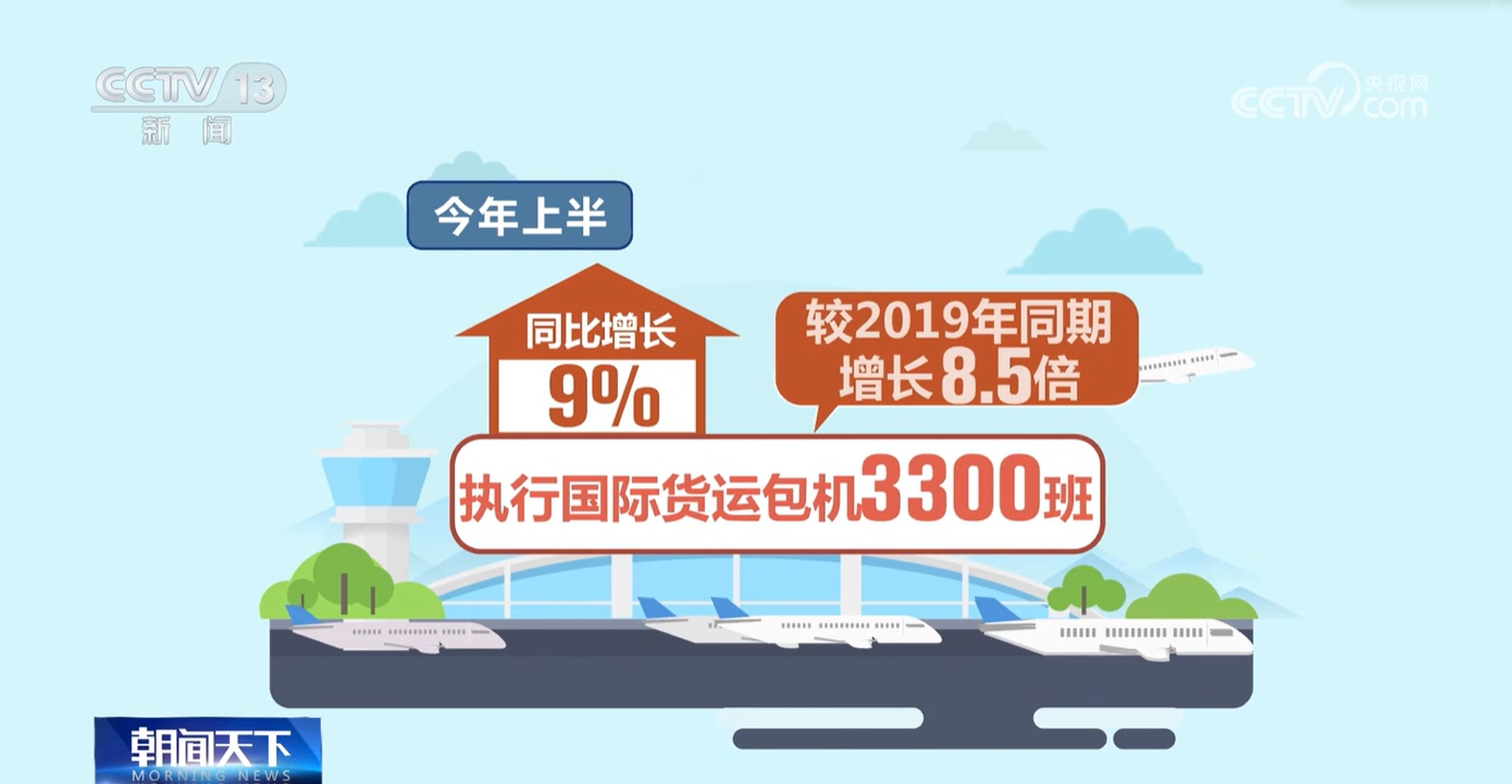 為適應(yīng)跨境電商、電動汽車、鋰電池和光伏產(chǎn)品“新三樣”等貨物運輸?shù)臅r效性、靈活性要求,國際貨運不定期航班量也保持增長的趨勢。今年上半年執(zhí)行國際貨運包機3300班,同比增長9%,較2019年同期增長8.5倍。