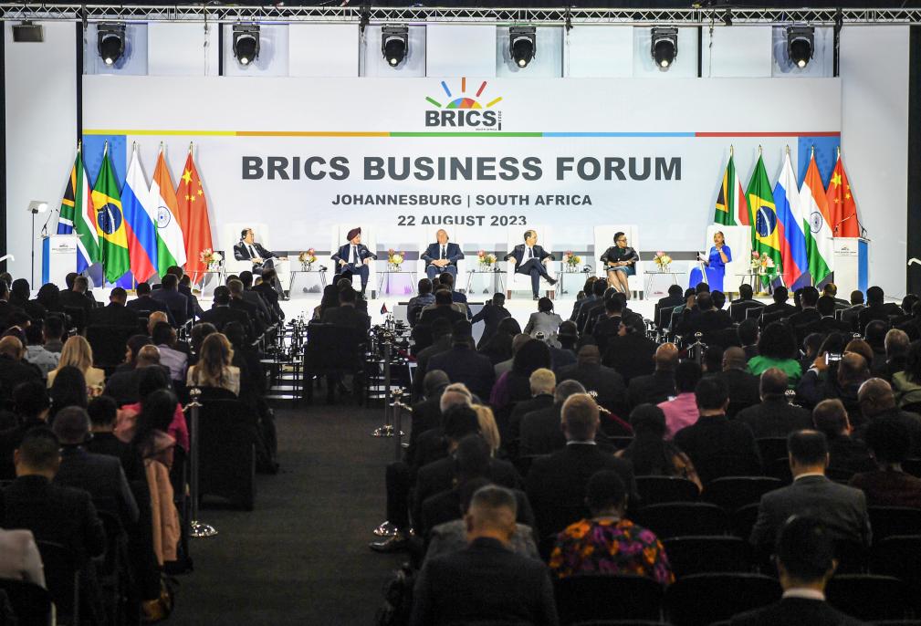這是2023年8月22日在南非約翰內(nèi)斯堡拍攝的金磚國(guó)家工商論壇現(xiàn)場(chǎng)。新華社記者李亞輝攝