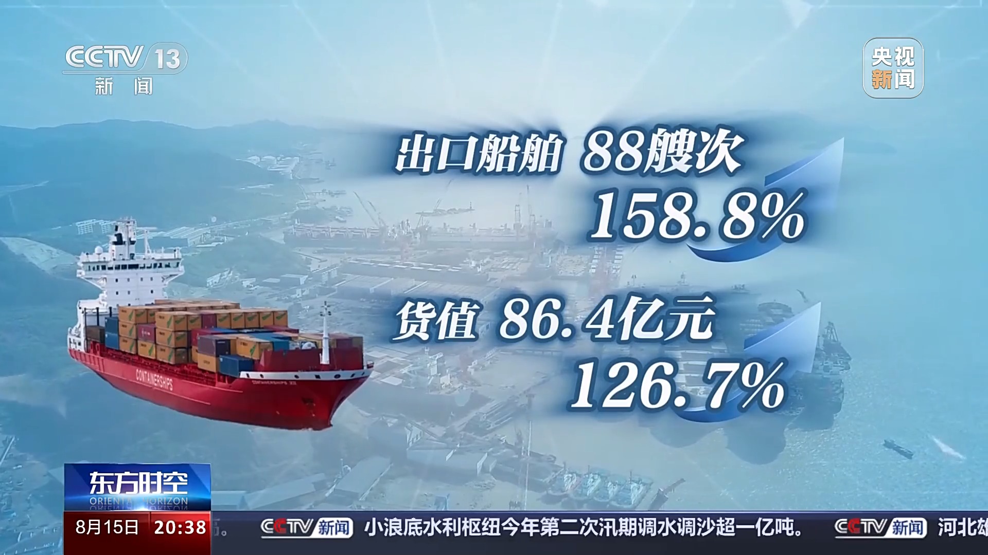 今年上半年,浙江全省進(jìn)出口總值2.56萬億元,比2023年同期增長(zhǎng)7.8%,其中,出口總值1.90萬億元,增長(zhǎng)8.6%,進(jìn)口總值6625.9億元,增長(zhǎng)5.5%。外貿(mào)進(jìn)出口規(guī)模均創(chuàng)歷史同期新高,其中,船舶出口勢(shì)頭強(qiáng)勁。