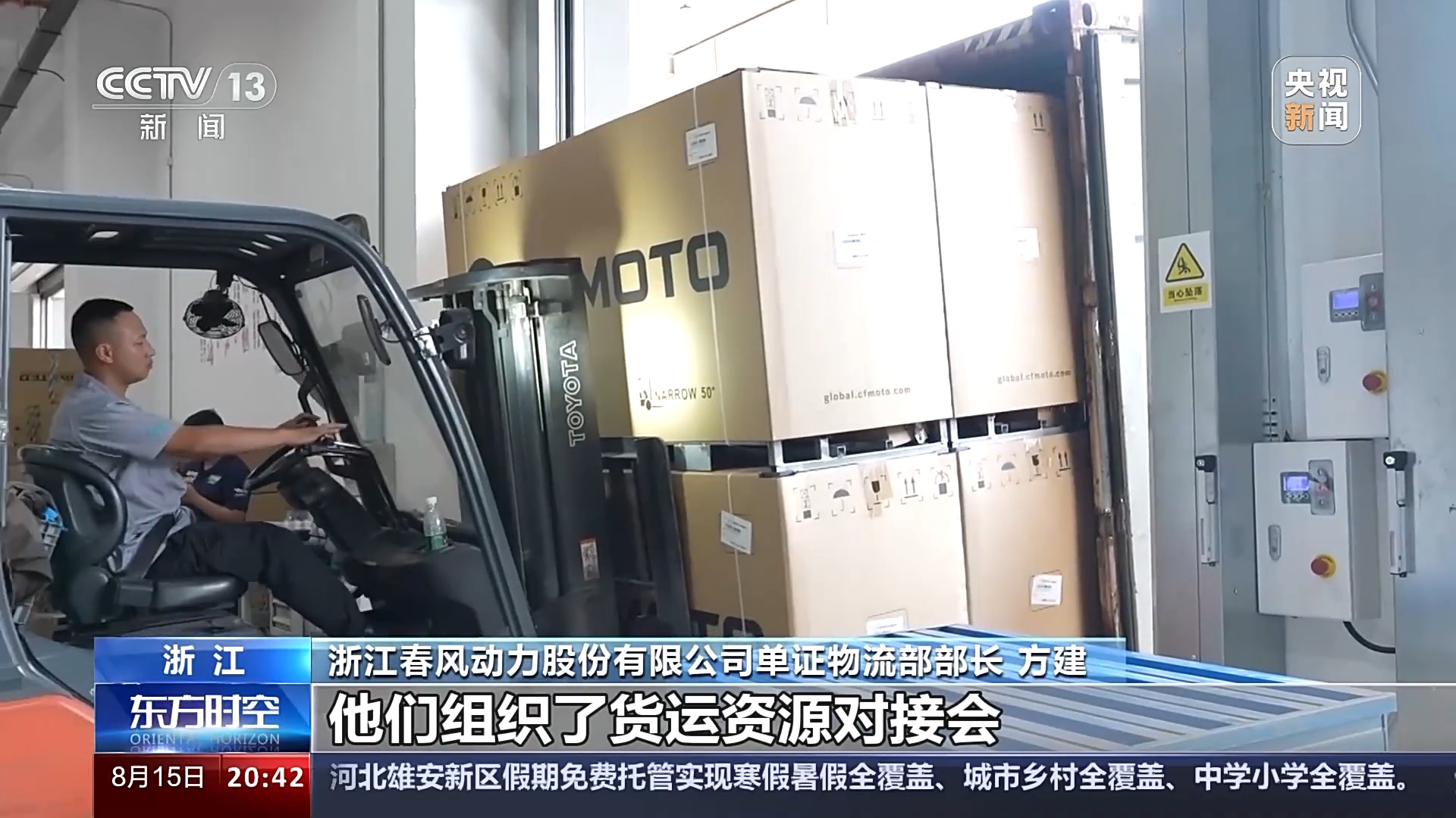 浙江春風(fēng)動(dòng)力股份有限公司單證物流部部長(zhǎng) 方建:多方面去尋求這種資源的匹配,然后政府這邊也積極給我們匹配一些資源。他們組織了貨運(yùn)資源對(duì)接會(huì),我們?cè)谶@里面也匹配了一些臨時(shí)的艙位。