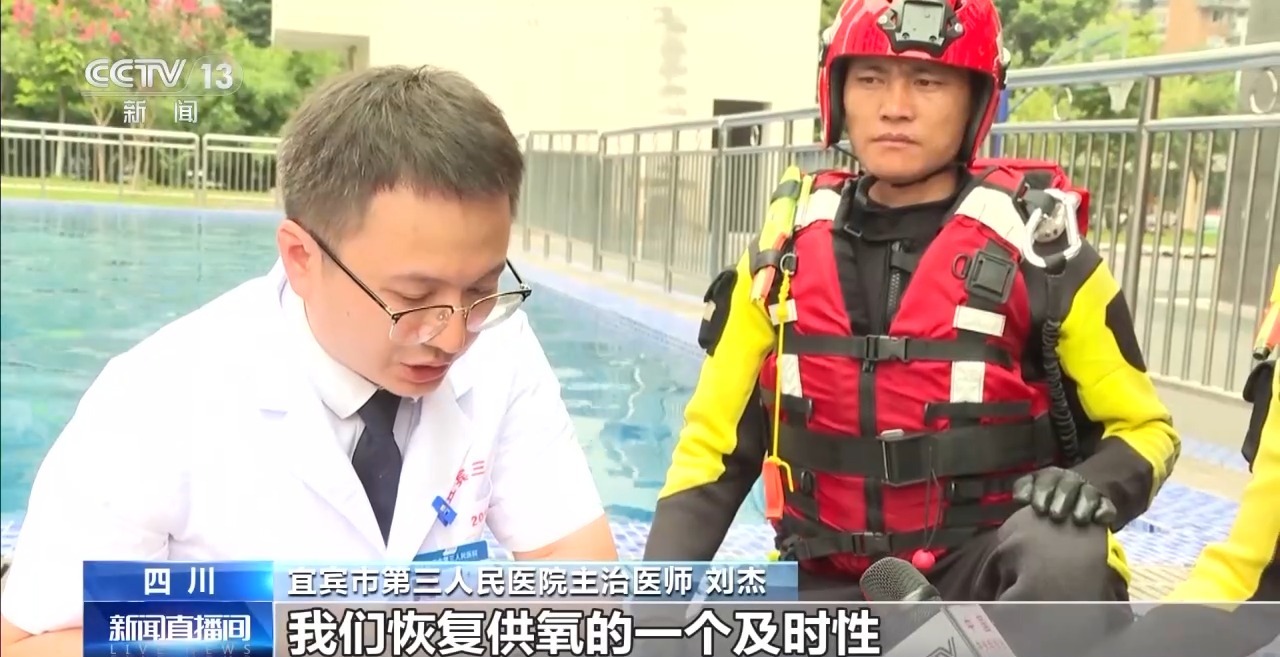 四川宜賓市第三人民醫(yī)院主治醫(yī)師 劉杰:以前我們強調控水,但是現(xiàn)在要強調恢復供氧的及時性。我們可以通過拍打肩部或者是大聲呼喊,來看他有沒有反應。如果發(fā)現(xiàn)他沒有呼吸,那連續(xù)馬上做5個人工呼吸。如果這個時候他仍然沒有意識,沒有自主呼吸,那我們判斷他的頸動脈搏動。如果這個時候沒有觸及搏動,我們要立刻準備胸外心臟按壓,按壓的頻率是每分鐘100到120次,然后再連續(xù)按壓30次以后,再交換兩次人工呼吸。