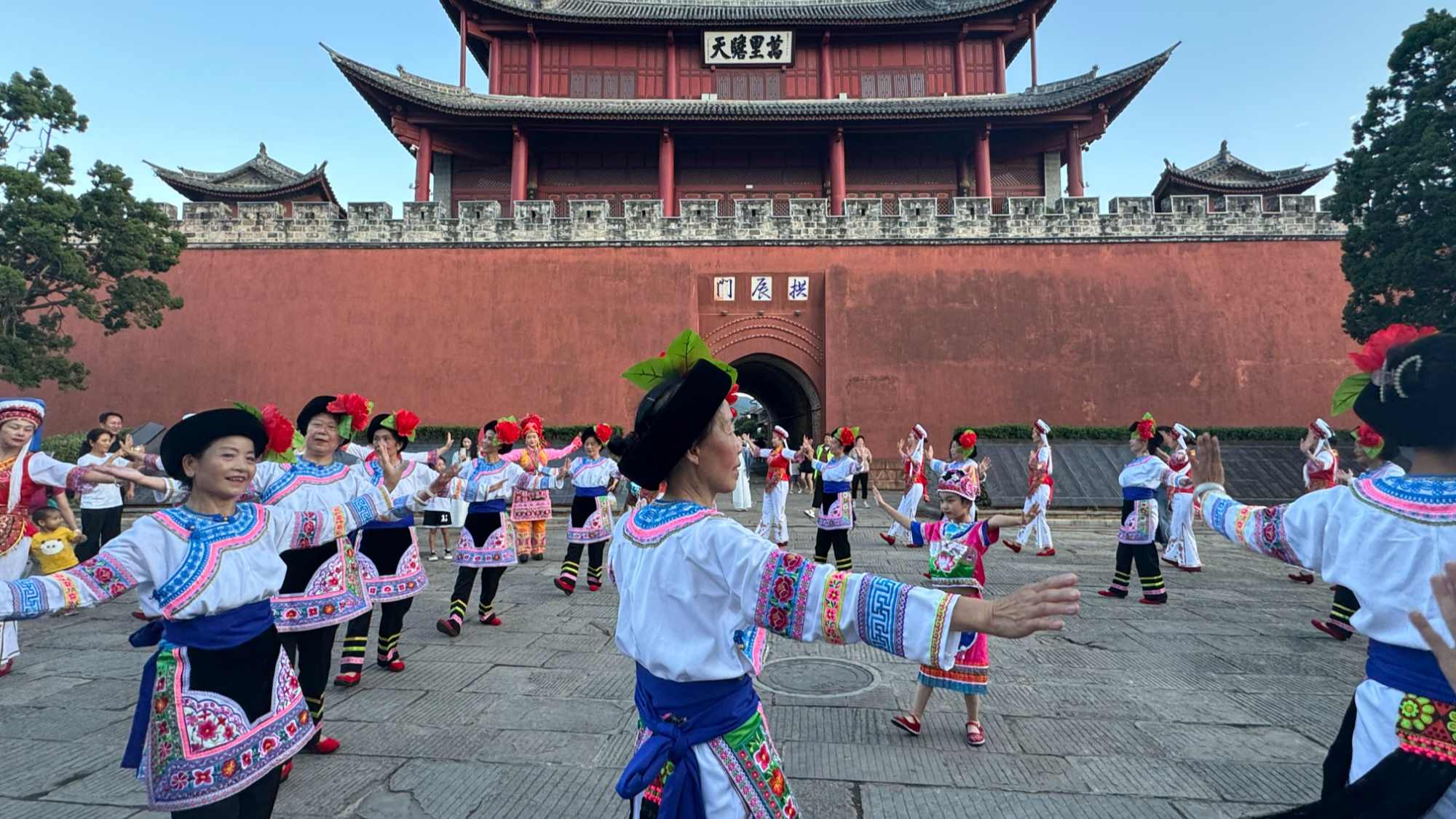 在巍山古城拱辰樓廣場(chǎng),經(jīng)常有“法治匯演”在這里上演。昨天,巍山的幾只民族文藝隊(duì)表演了《白族霸王鞭》舞蹈、《平安巍山》快板、《是你》聲樂(lè)、《阿克哩哈》舞蹈等節(jié)目,巧妙地將普法內(nèi)容融入到其中,以歌舞傳遞法治的力量,群眾載歌載舞,現(xiàn)場(chǎng)氛圍濃烈。