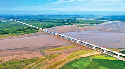 新開黃河大橋全長14.73公里,是黃河上普通干線第一長橋,其中主橋也是目前黃河上最長連續(xù)梁橋。