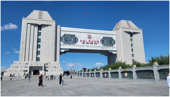 滿洲里口岸于1902年建成,在現(xiàn)國門處先后建設(shè)了四代國門,如今的國門建筑面積5905平方米,總長105米,寬46.6米,高43.7米,是我國邊境線上最大的國門,也是弘揚國威、展現(xiàn)國力的標(biāo)志性建筑。