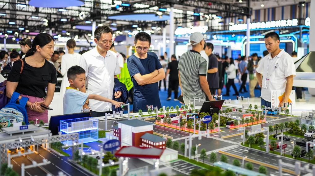 8月28日,觀展者在2024中國國際大數(shù)據(jù)產(chǎn)業(yè)博覽會(huì)會(huì)場參觀智慧交通系統(tǒng)。新華社記者 陶亮 攝