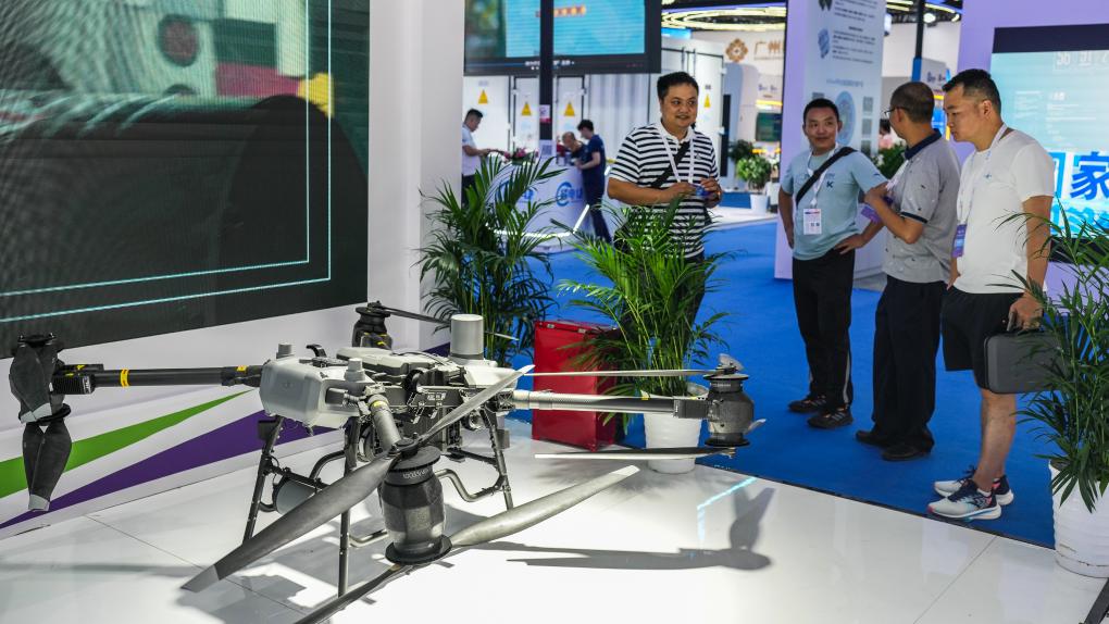 8月28日,觀展者在2024中國國際大數(shù)據(jù)產(chǎn)業(yè)博覽會(huì)會(huì)場參觀新型智能無人機(jī)。 新華社記者 陶亮 攝