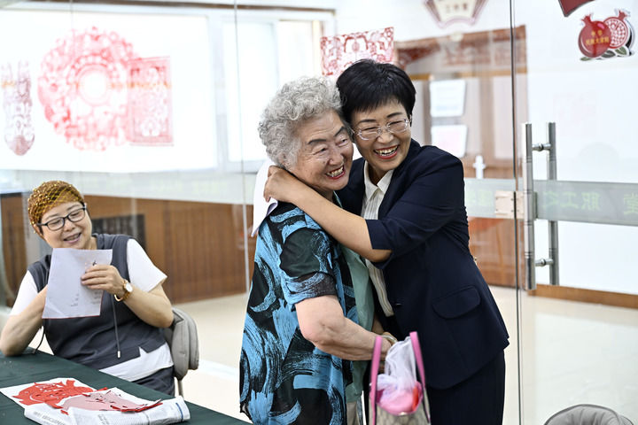 寧夏銀川市金鳳區(qū)長城花園社區(qū)居民在社區(qū)“才藝堂”制作剪紙(2024年6月19日攝)。新華社記者 毛竹 攝