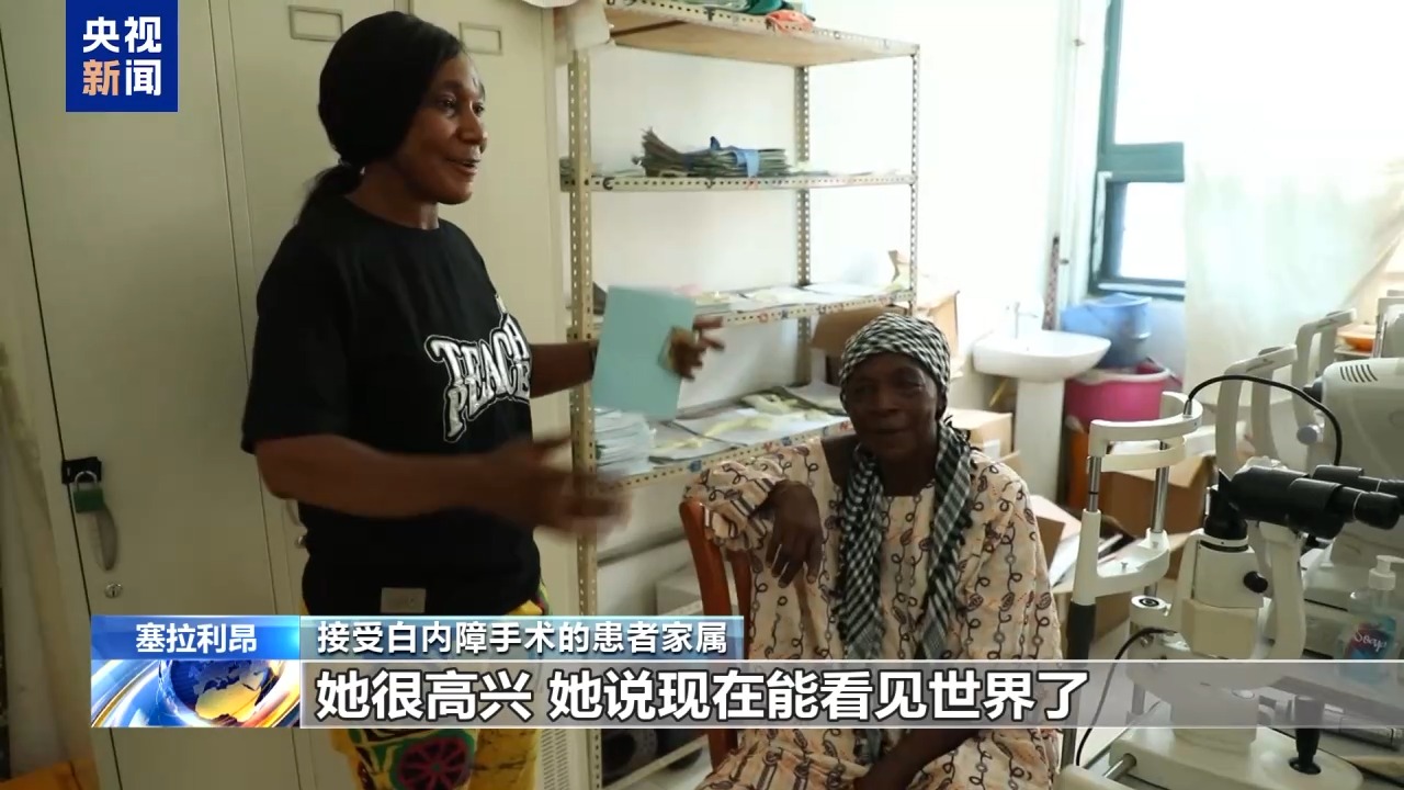 第25批援塞拉利昂中國醫(yī)療隊(duì)隊(duì)員 眼科醫(yī)生 劉丹:這是昨天一個(gè)(接受)白內(nèi)障手術(shù)的病人,她術(shù)前的視力只能看見眼前的手在動,手指頭都分辨不太清楚。今天一打開(紗布)視力是0.3,我覺得過幾天視力還會好很多。