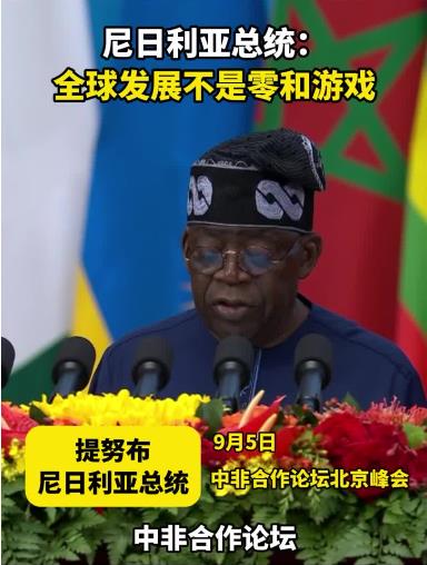 尼日利亞總統(tǒng)提努布5日在中非合作論壇北京峰會開幕式上說,中非合作論壇以及更廣泛的中非伙伴關系所取得的成功,表明一個重要真理:全球發(fā)展不是零和游戲。