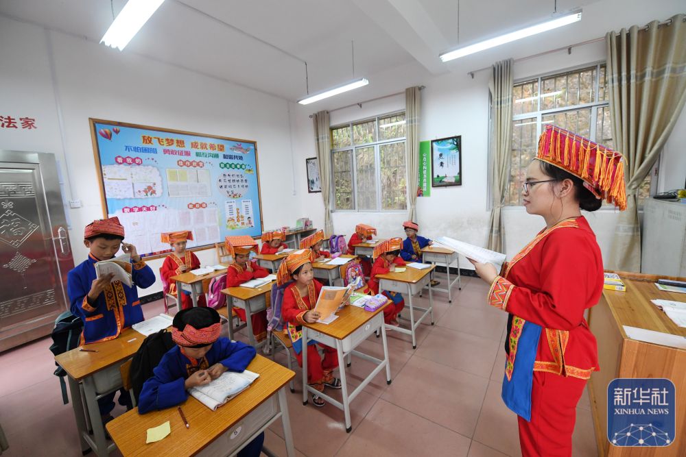 在廣西灌陽縣洞井瑤族鄉(xiāng)野豬殿小學,“95后”老師趙艷在給學生上課(2024年3月27日攝)。