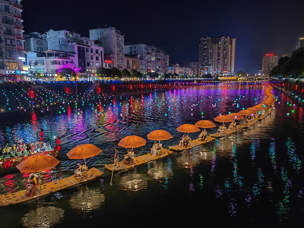 湖北宣恩,地處鄂西。一條河、兩條街,縣城的核心區(qū),是一個開放式的4A級景區(qū)。每當夜幕降臨,這里就進入了一天中最熱鬧的時段。波光粼粼的河面上,兩條“龍船”滿載游客,蜿蜒行進,街市上人頭攢動,香味撲面,一幅宛如“清明上河圖”的景象令人贊嘆。