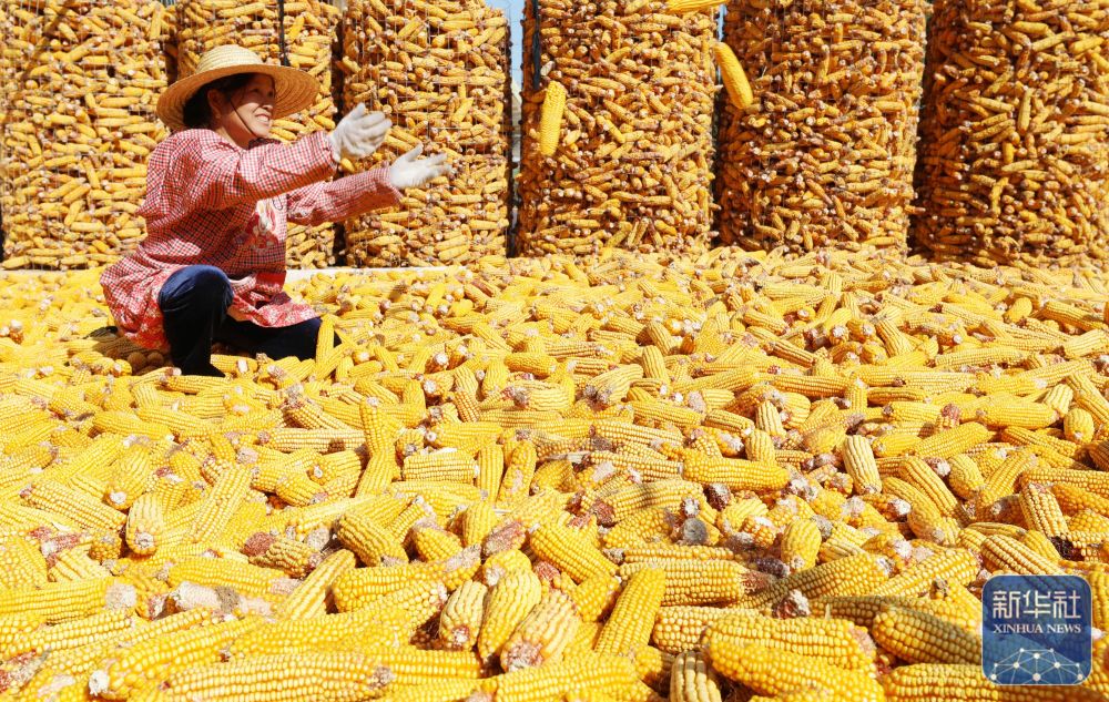 9月21日,在河南省焦作市武陟縣大封鎮(zhèn)大封村,農民將收獲的玉米集中貯藏。