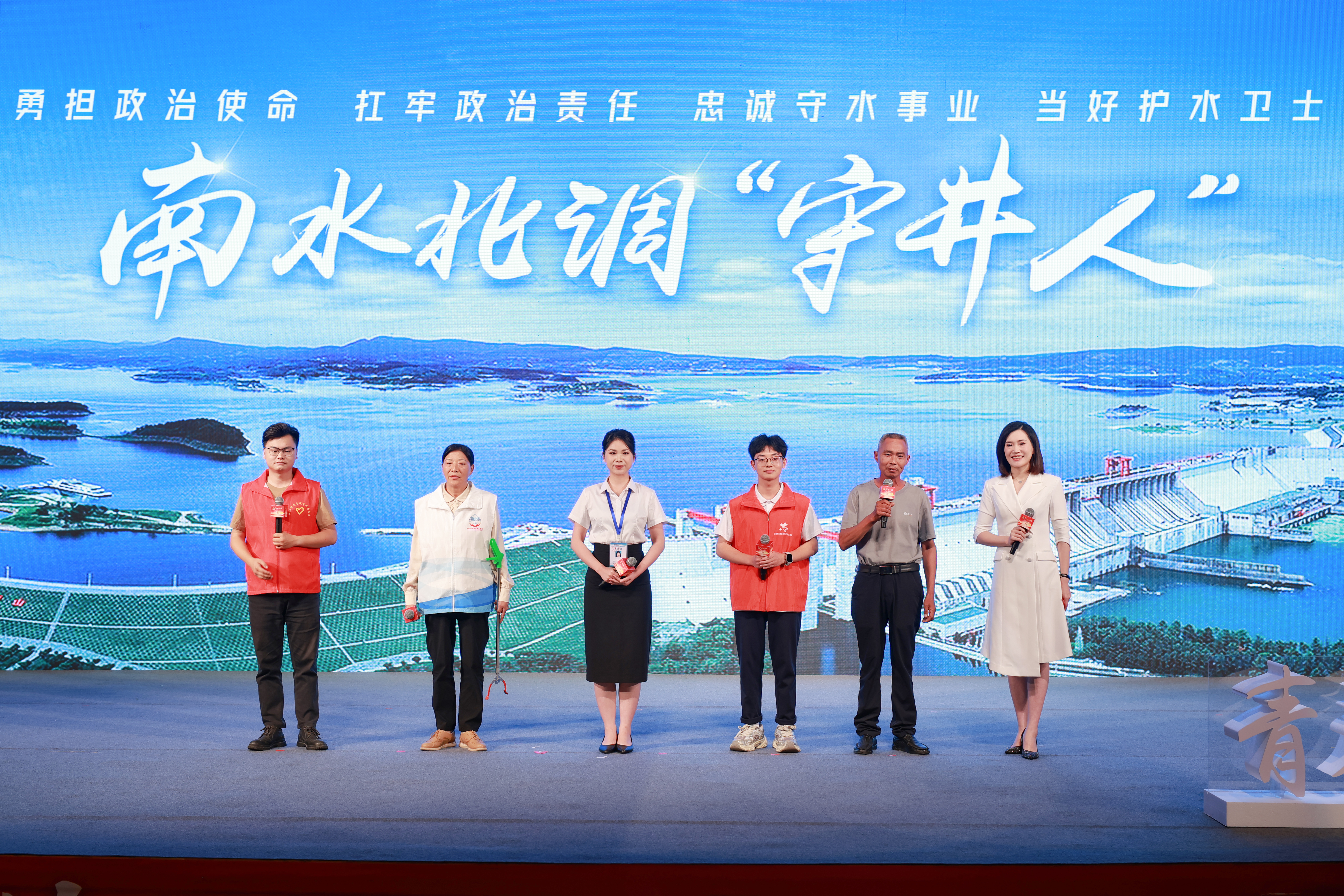 今年8月,一封來自習(xí)近平總書記的回信在丹江口庫區(qū)引起了強烈反響。丹江口守水護水志愿者吳勇分享《南水北調(diào)“守井人”》的故事:10年來,鄂西北的丹江口群眾一直堅持做著一件“點滴的事”,也是“天大的事”——確?!耙汇逅览m(xù)北送”!丹江口的守水調(diào)度員余丹、清漂員張旭春、護水員秦立萍、學(xué)生志愿者瞿德齊來到現(xiàn)場,并一起倡議:“踐行總書記的囑托,繼續(xù)弘揚志愿服務(wù)精神,當(dāng)好‘守井人’,確?!汇逅览m(xù)北送’”!