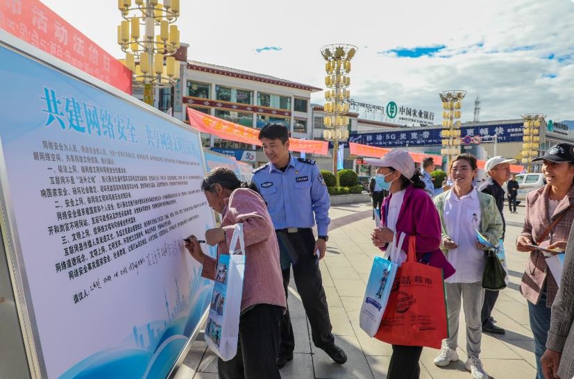 網(wǎng)絡(luò)安全人人有責(zé),網(wǎng)絡(luò)安全人人參與。近期,林芝市各級公安機關(guān)以國家網(wǎng)絡(luò)安全宣傳周以契機,深入社區(qū)廣場、大學(xué)校園、鄉(xiāng)鎮(zhèn)村居等,用通俗易懂的“大白話”說事明理,用“家常話”解讀“大政策”,用“小故事”闡釋“大道理”,向群眾積極宣傳解讀《中華人民共和國網(wǎng)絡(luò)安全法》《中華人民共和國個人信息保護法》等法律法規(guī),引導(dǎo)群眾認識網(wǎng)絡(luò)安全基礎(chǔ)知識、常見網(wǎng)絡(luò)安全威脅等內(nèi)容,提升人民群眾網(wǎng)絡(luò)安全防護意識和能力水平。同時,民警以案釋法向群眾通報近年來公安機關(guān)依法重拳打擊各類網(wǎng)絡(luò)亂象取得的成效,號召廣大群眾做正能量的傳播者、網(wǎng)絡(luò)安全的維護者,警民攜手共筑網(wǎng)絡(luò)安全“防火墻”。