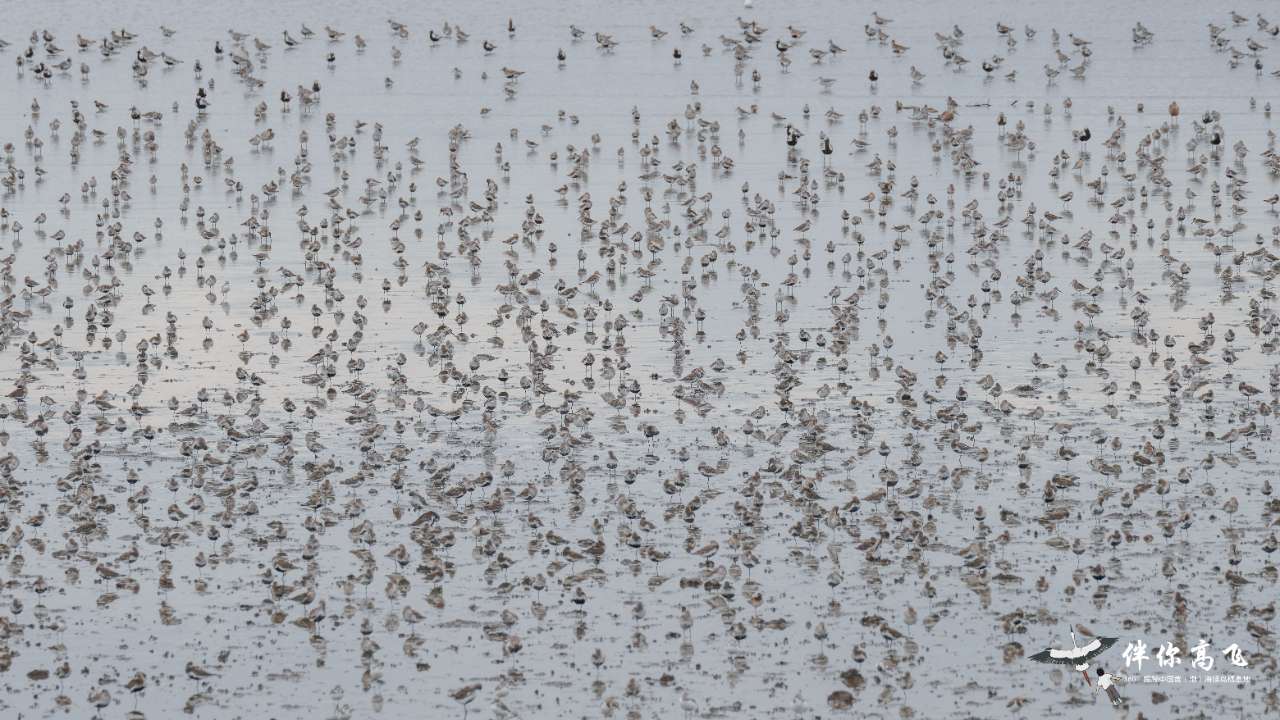 其中,丹東鴨綠江口候鳥棲息地位于東亞-澳大利西亞候鳥遷飛通道北部,提名地內(nèi)充沛的底棲動物和各種漁業(yè)資源,每年為二十萬到四十萬只候鳥提供了關(guān)鍵的能量補給來源,是重要的候鳥停歇地和補給站之一。圖為在灘涂覓食的大批鸻鷸。(徐譚 攝/光明圖片)