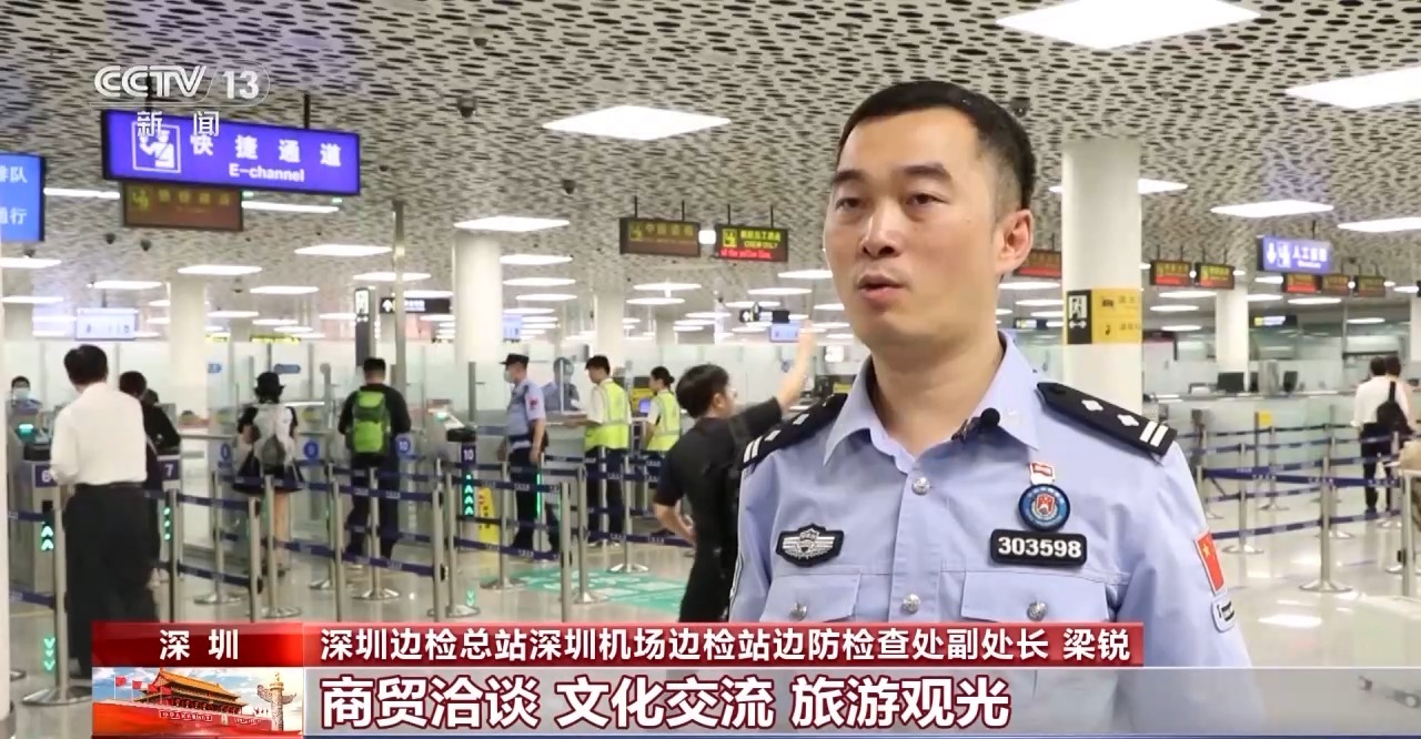 深圳邊檢總站深圳機(jī)場邊檢站邊防檢查處副處長 梁銳:今年經(jīng)深圳機(jī)場來華商貿(mào)洽談、文化交流、旅游觀光、探親訪友的入境外籍人員超36萬人次,同比增長約143%。其中,免簽入境外籍人員超13萬人次,同比增長5倍多。