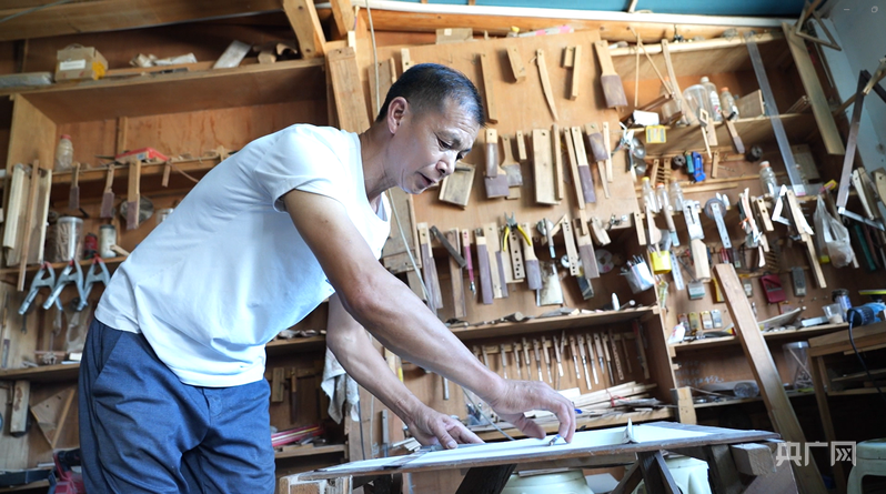陸根衛(wèi)正在繪制模型圖紙(央廣網發(fā) 張明輝 攝)