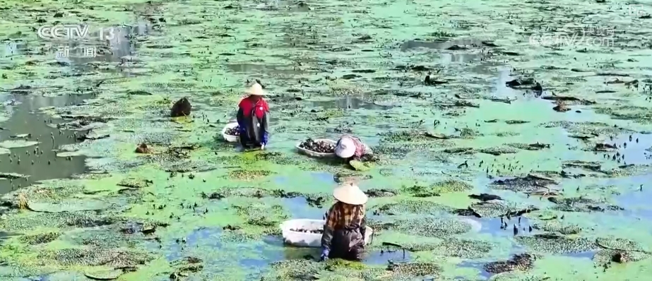 國慶假期這幾天,安徽霍邱的千畝芡實迎來大面積豐收。水田里的采摘工人們搶抓農(nóng)時采摘鮮嫩的芡實,分享收獲的喜悅。