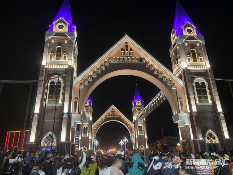 特克斯縣夜間演出吸引眾多游人。石榴云/新疆日報(bào)記者姚剛攝