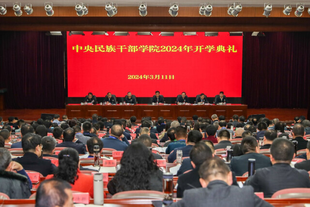 ▲3月11日,中央民族干部學(xué)院2024年開(kāi)學(xué)典禮暨全國(guó)民委系統(tǒng)鑄牢中華民族共同體意識(shí)輪訓(xùn)班(第一期)舉行開(kāi)班式。來(lái)源:中央民族干部學(xué)院