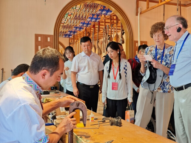 ▲2024年6月,“中國(guó)新疆的歷史與未來(lái)”國(guó)際論壇的外國(guó)專(zhuān)家在疏附縣“中國(guó)新疆民族樂(lè)器村”考察。中國(guó)民族報(bào)記者李翠攝