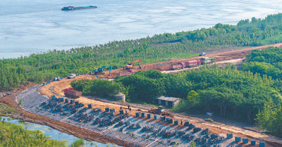 長江安徽蕪湖段整治工程施工現(xiàn)場。該工程建成后可進一步提升防洪能力,改善生態(tài)環(huán)境。肖本祥攝(人民視覺)