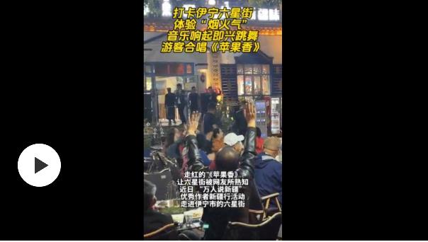 六星街的“蘋(píng)果香”餐廳更是成為眾多游客的打卡點(diǎn),他們?cè)谄穱L新疆美食的同時(shí),也跟著齊聲合唱被稱為“六星街成名曲”的《蘋(píng)果香》。