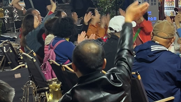 游客齊聲合唱《蘋(píng)果香》。中國(guó)青年網(wǎng)記者 馬志強(qiáng)攝
