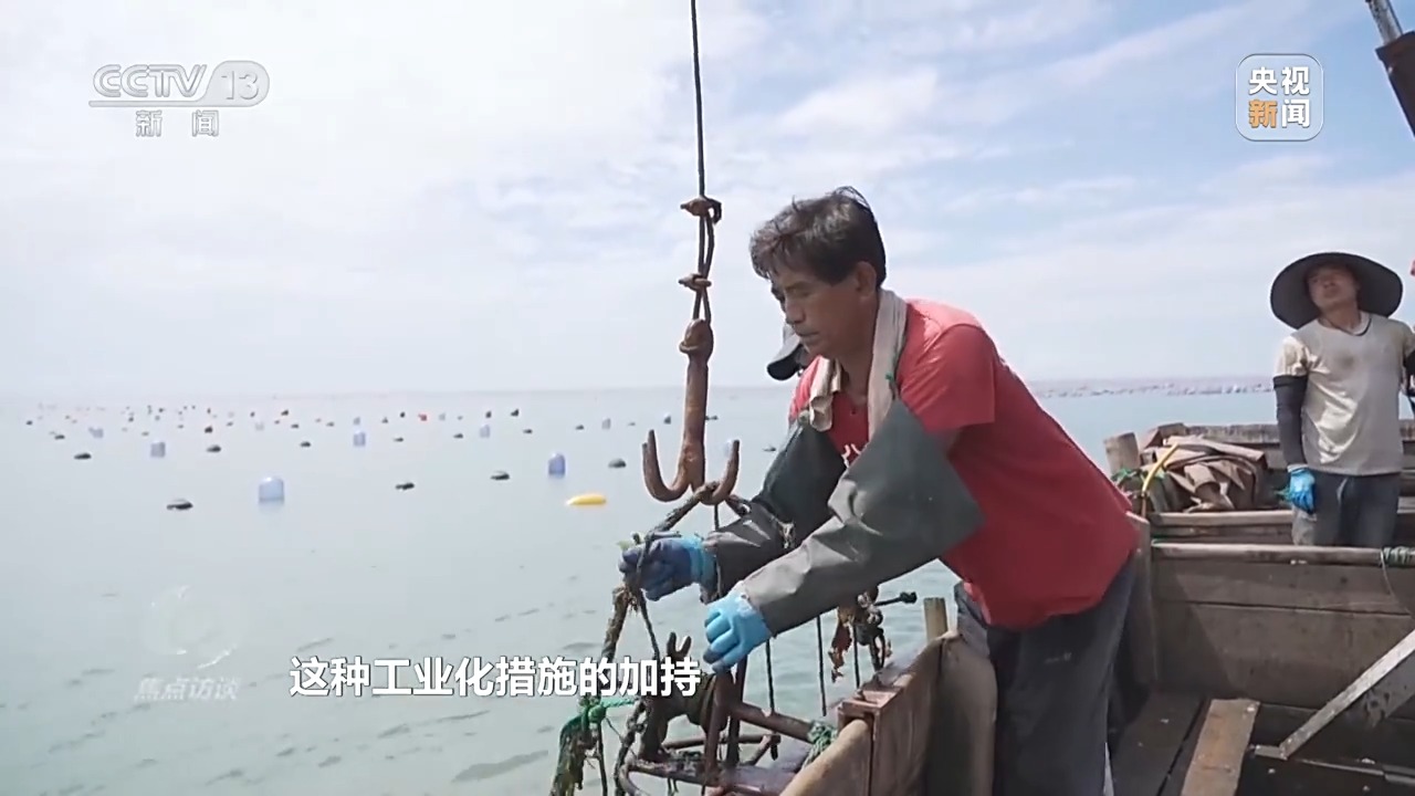 中國科學院海洋研究所研究員 張國范:“比如容量的控制,包括溯源技術、凈化等工業(yè)化措施的加持。我們過去主要在黃海渤海進行養(yǎng)殖,現(xiàn)在擴展到福建東海以及廣東、廣西、海南南海,每年養(yǎng)殖面積達到100萬畝,產量100萬噸,產值100個億?!?/p>